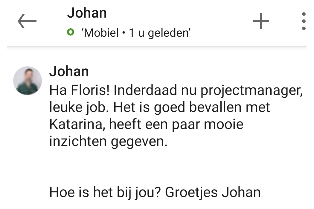 "Ik vind dat mijn coach op de juiste wijze te werk is gegaan, omdat hij eerst mij en mijn drijfveren heeft achterhaald en erna pas verder ging met mijn doel. Het feit dat ik nu weet wat mijn meest krachtige drijfveer is zorgt dat ik dichter bij mezelf kan blijven."